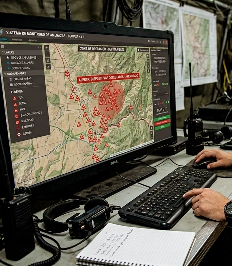 Transformamos áreas contaminadas de UXOs en espacios seguros, brindando servicios especializados en remoción de municiones no detonadas bajo normativa nacional y mejores prácticas internacionales.